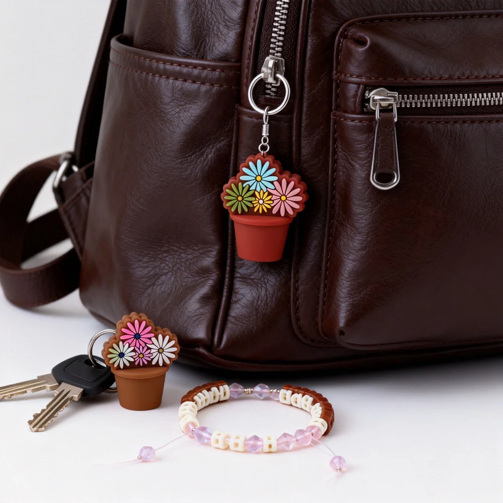 5 pz. Perline in Silicone a Forma di Pianta in Vaso, Perline 3D a Fiore Margherita per Creazione Fai-da-te di Portachiavi, Penne, Laccetti e Gioielli