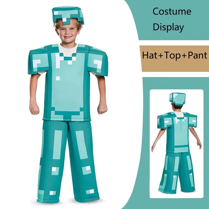 NUOVO Costume da Cosplay per Bambini, Armatura Diamantata del Personaggio Steve, Set di 3 Pezzi, Outfit per Travestimenti per Feste di Halloween