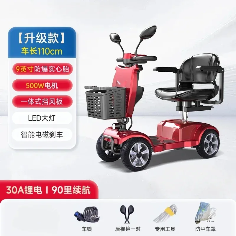 Nuovo Scooter Elettrico a Quattro Ruote per Anziani, Veicolo Antiribaltamento per Disabili, Auto a Doppia Batteria