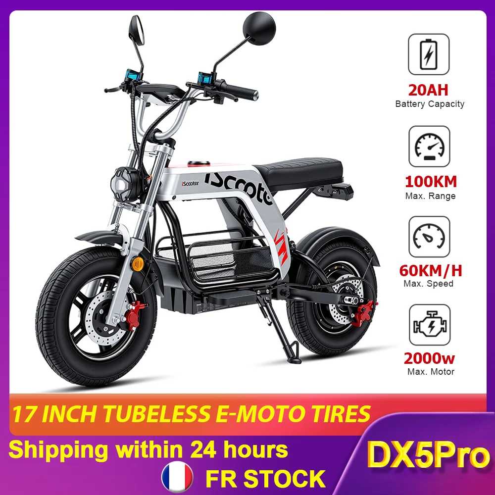 Monopattino Elettrico DX5Pro 2000W, Batteria 52V 20Ah, Velocità Massima 60km/h, Autonomia 90-100km, con NFC, Pneumatici da 17 Pollici con TCS, Sedile e Cestino