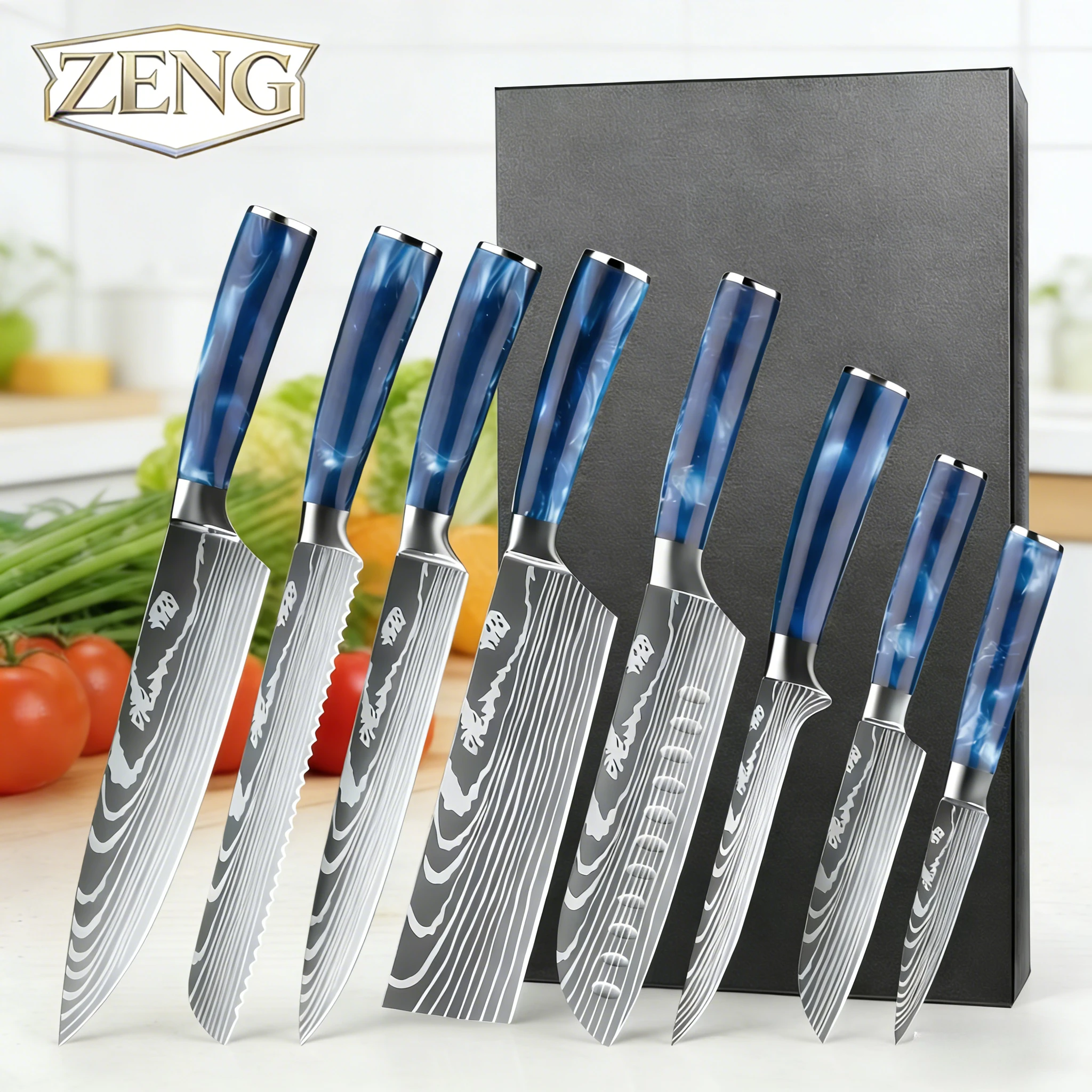 Set di coltelli da cucina ZENG Sharp con motivo Damasco, utensili in acciaio inossidabile per carne, verdure, frutta, pane, pelatura, coltelli da cucina resistenti