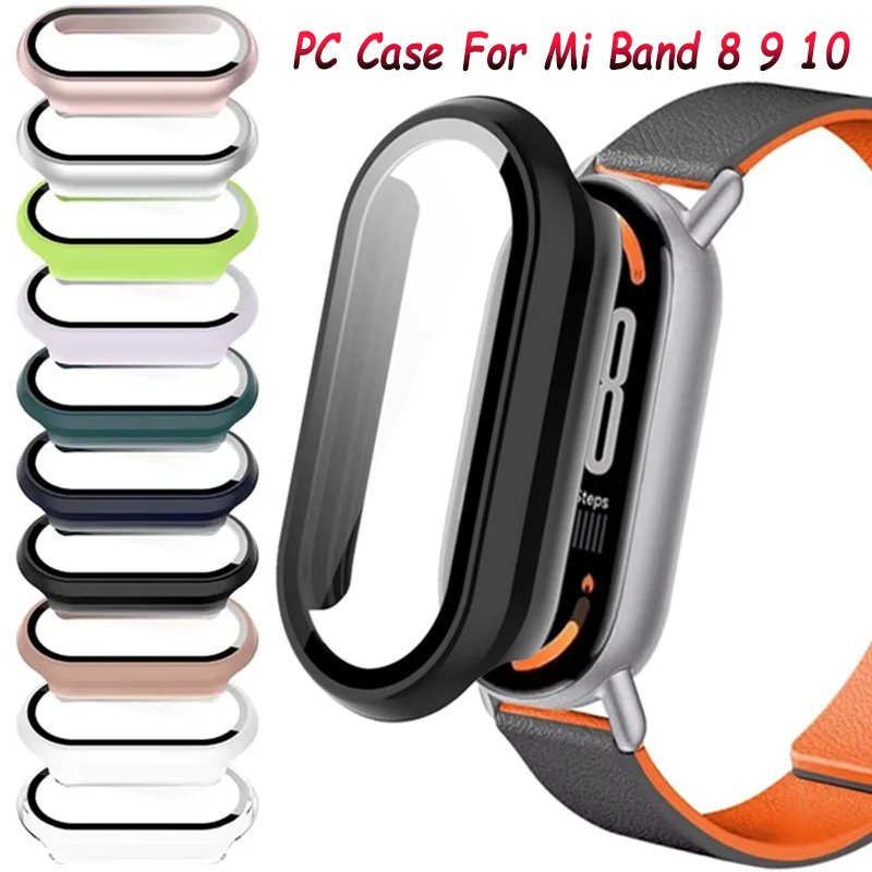 Custodia protettiva per PC + vetro per Xiaomi Mi Band 10 9 8 NFC Protezione per schermo intero Shell Copertura per paraurti