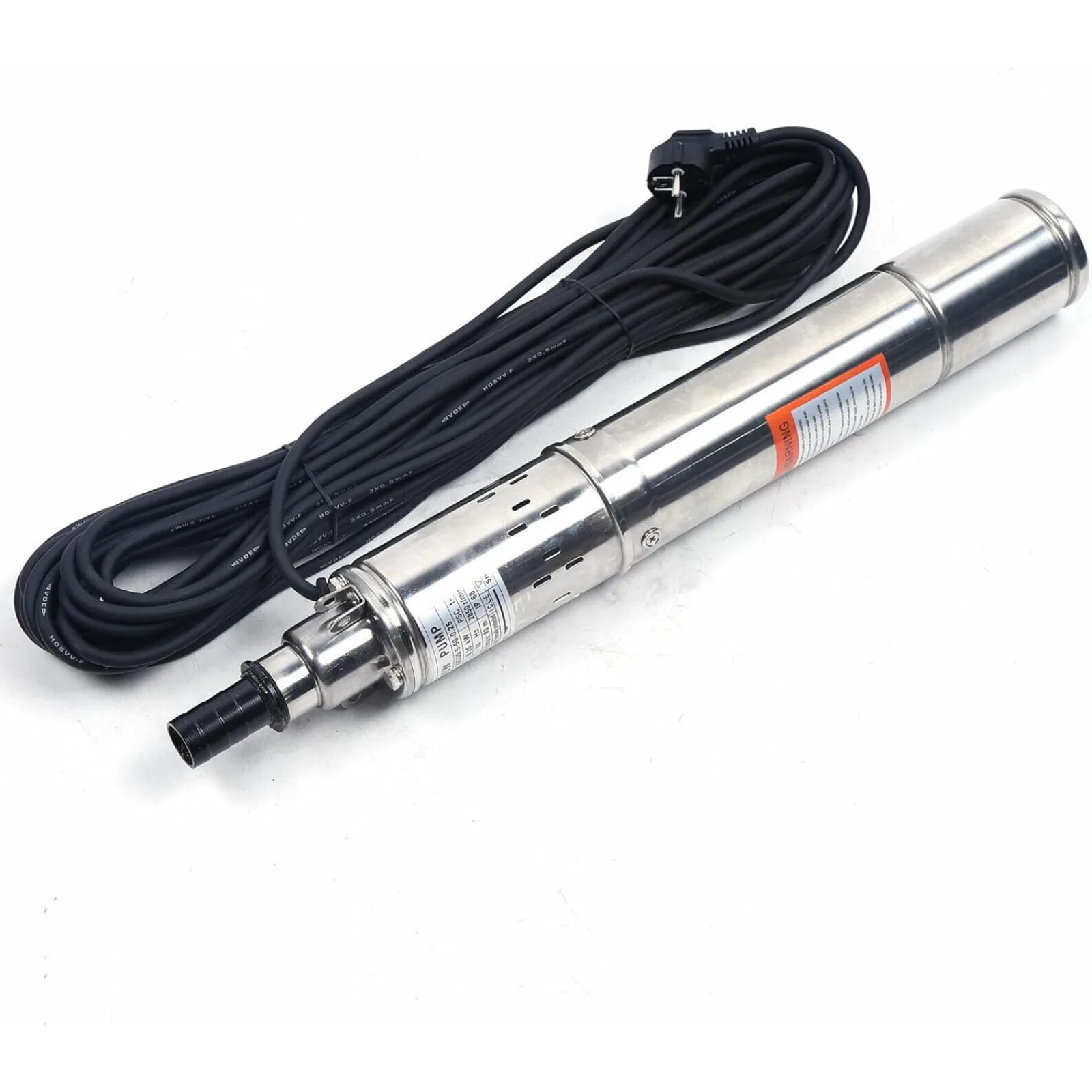 Pompa per pozzi profondi in acciaio inossidabile (7,5 * 52 cm), cavo da 20 m/0,25 KW/1600 L/h Pompa dell'acqua, prevalenza di consegna di 80 M, per l'irrigazione di rifornimenti d'acqua dolce