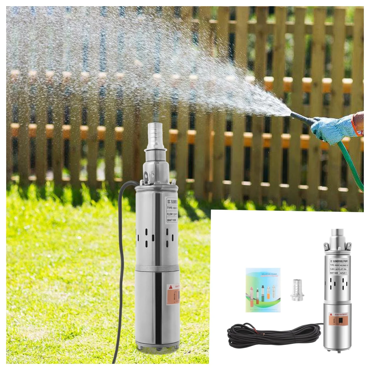Pompa Solare Sommergibile per Pozzi Profondi 12V 180W, Pompa Acqua in Acciaio Inossidabile, Pompa Agricola con Sollevamento 30m/98.43ft per Irrigazione Giardino Casa