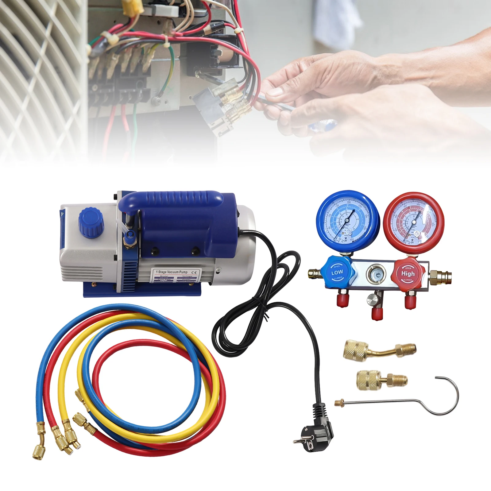 Set pompa per vuoto professionale e manometro per collettore Kit di refrigerazione A/C Kit pompa per vuoto split domestico con adattatori 410 in rame e tubi flessibili 3x4FT