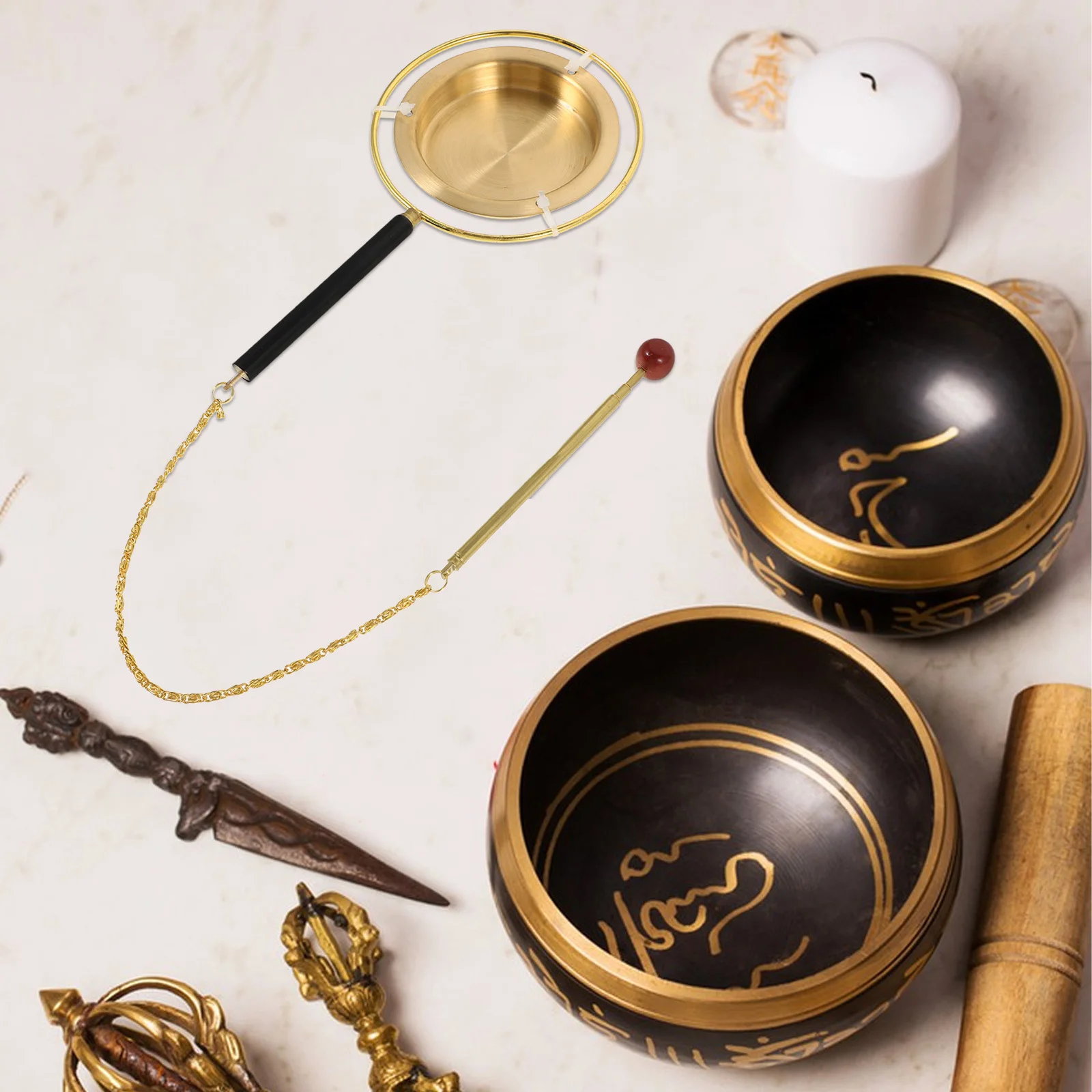 Attaccante per batteur a sfera rotonda in pelle di pecora per campane tibetane in cristallo Ciotola per musica professionale Meditazione yoga con anello in gomma