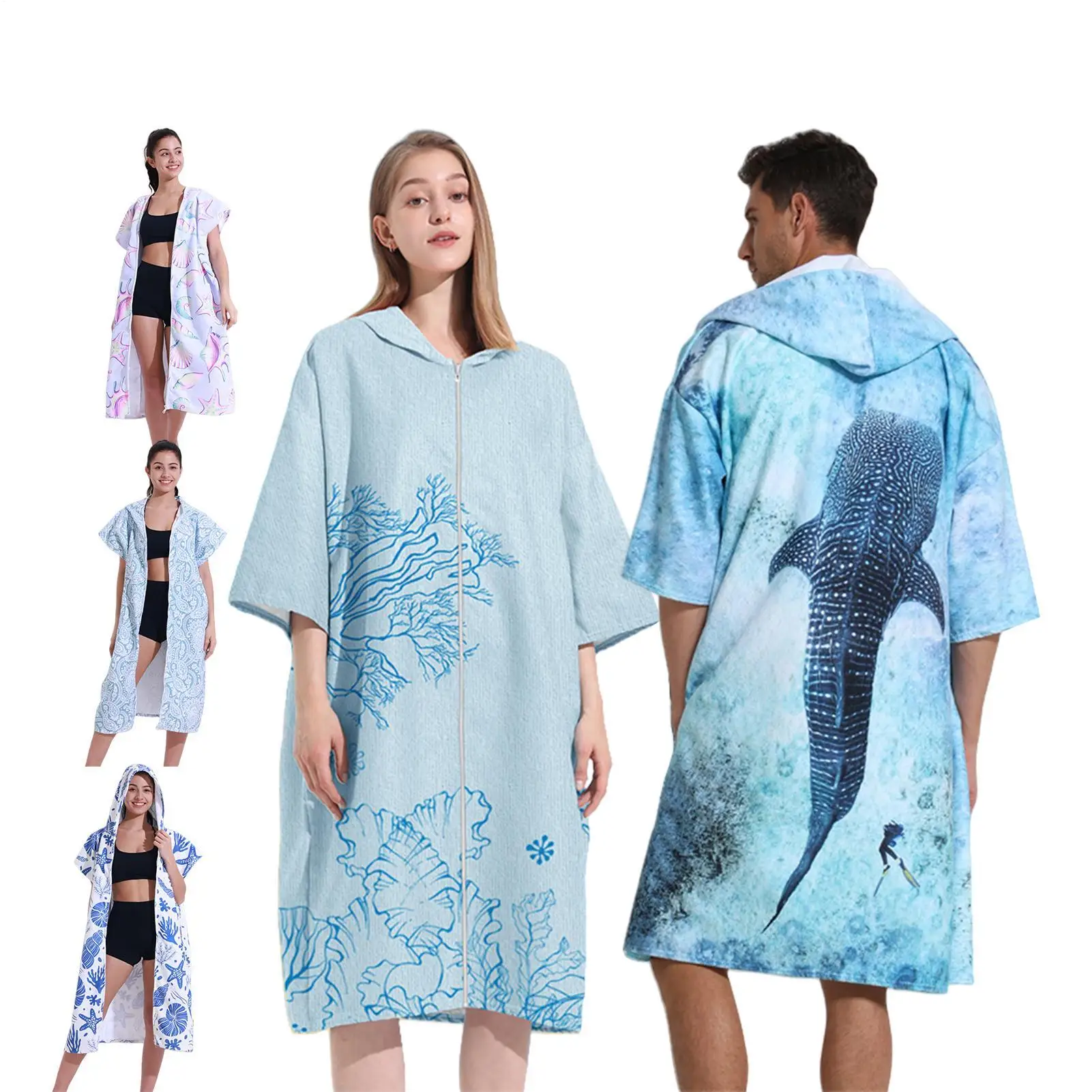 Asciugamano da spiaggia per adulti a cambio lungo con cappuccio per nuoto, surf, yoga, costume da bagno assorbente ad asciugatura rapida, asciugamano fasciatoio