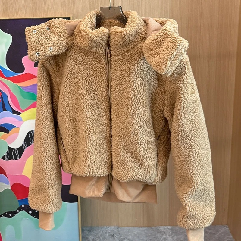 Giacca firmata Cappotto da yoga Giacca sportiva Agnello Peluche Caldo colletto rialzato Giacca invernale Maglione Cappuccio rimovibile Giacche da pesca