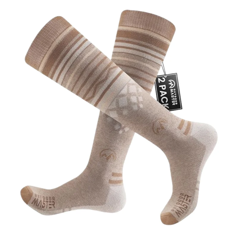 OutdoorMaster Confezione da 2 calzini da sci unisex in lana merino per uomo/donna (OTC) con polsini antiscivolo, calzini termici per l'inverno, snowboard