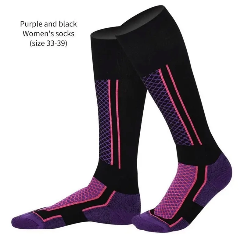 Calzini da sci traspiranti 1 paio per uomo e donna con suola in spugna di cotone, al ginocchio, imbottiti, adatti per snowboard ed escursionismo