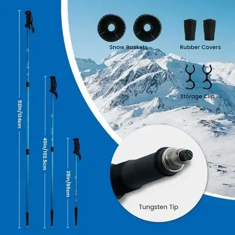 Canne da sci telescopiche in alluminio e fibra di carbonio per alpinismo e escursioni all'aperto