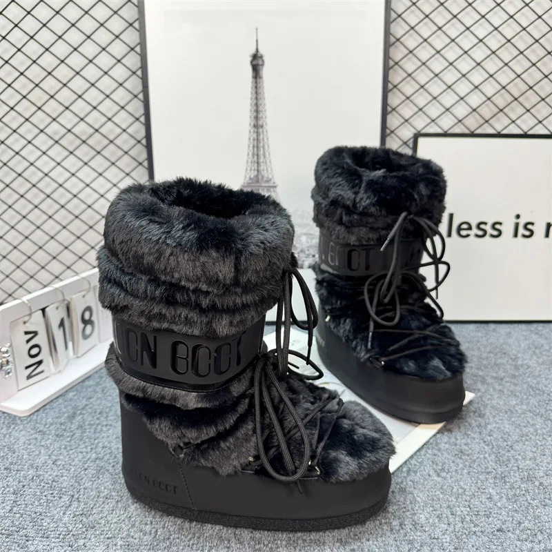 Stivali Invernali in Pelliccia Sintetica, Scarpe da Neve con Suola Spessa, Calde e Pelose per Donna, Scarponi da Sci per Esterno