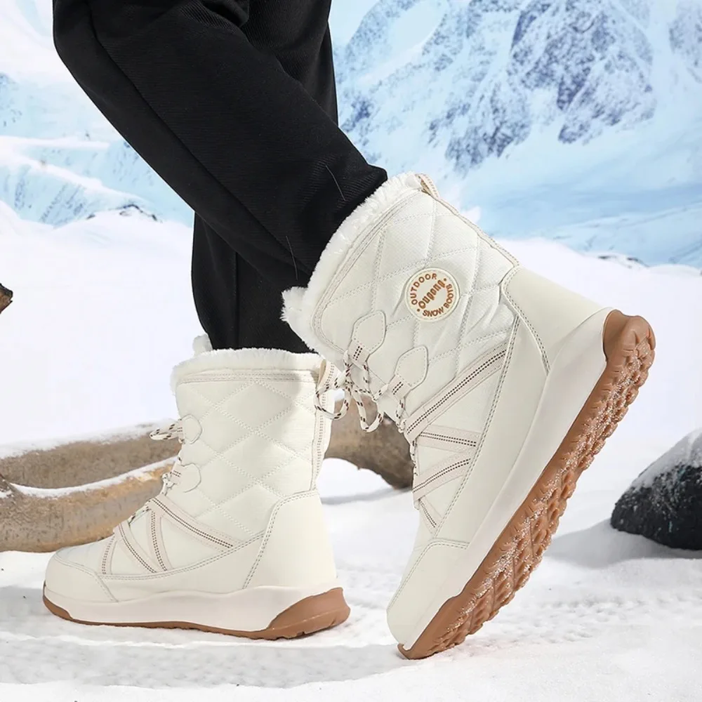 Stivali da neve da sci femminili in cotone antiscivolo impermeabili con plateau alla caviglia da donna invernali 2025 taglia 36-41