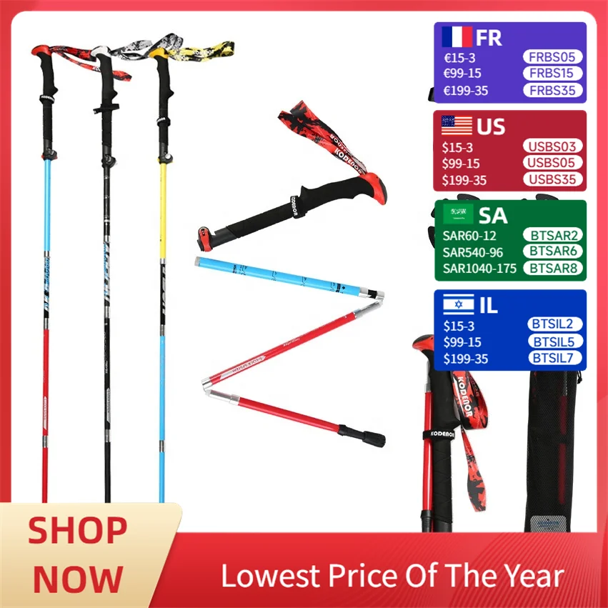 Bastone Tekking portatile a blocco rapido Bastoncini da sci da campeggio colorati a 5 sezioni in fibra di carbonio per arrampicata in montagna
