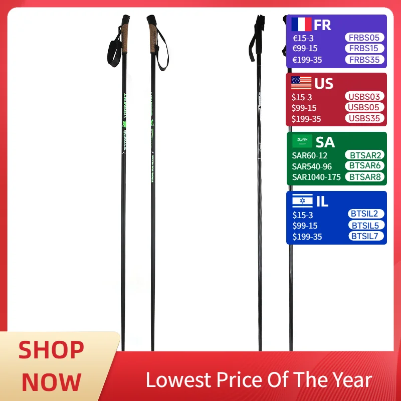 Canne da sci regolabili in carbonio e alluminio 7075 105-145 cm con manico raschietto e pratico gancio per il touring di fondo