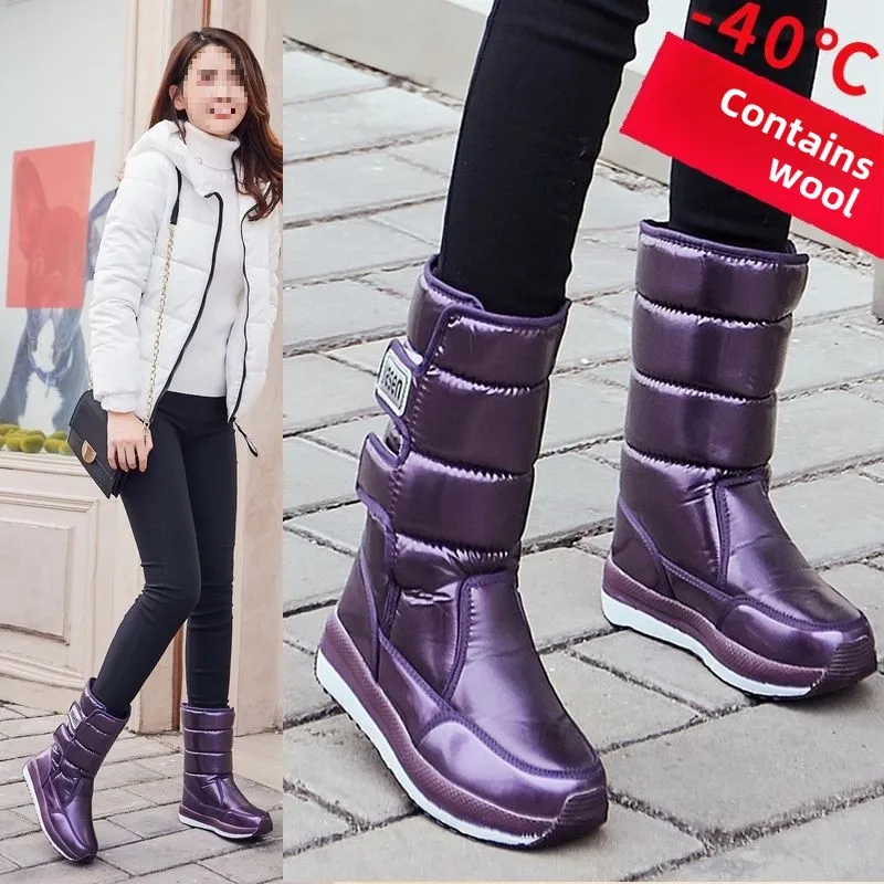 Calde scarpe sportive invernali da donna con stivali da neve in peluche, stivali da sci impermeabili e antiscivolo, scarpe da trekking da donna con suola spessa