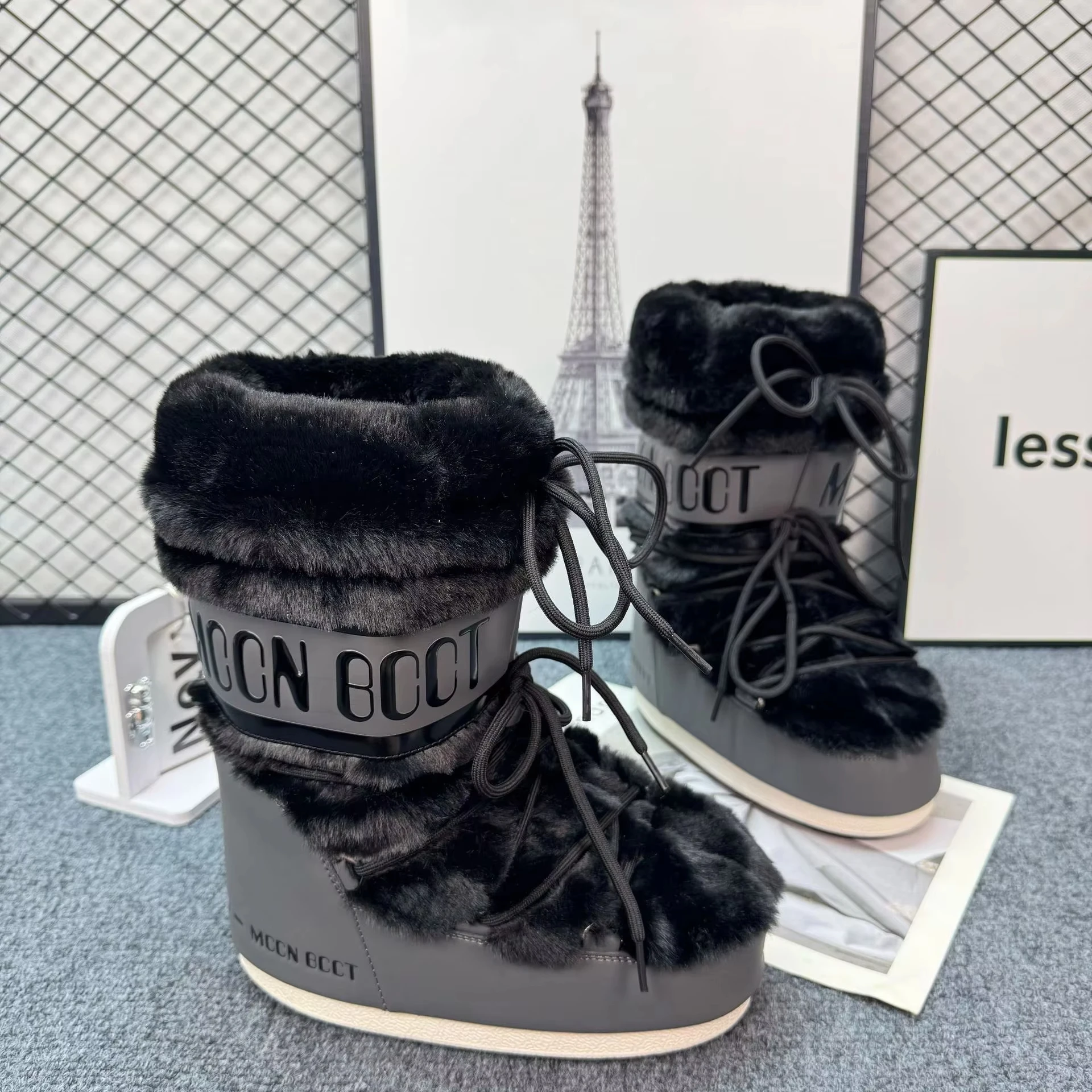 Stivali in Pelliccia Sintetica 2025, Moda Invernale, Stivali da Neve con Suola Spessa, Scarpe Calde in Pelliccia per Donna, Calzature da Sci per Esterno