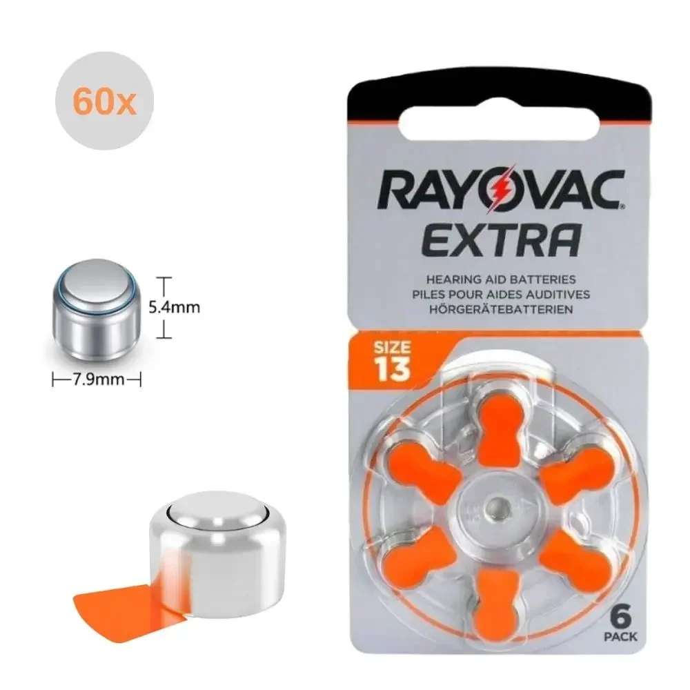 Rayovac Batterie per apparecchi acustici extra ad alte prestazioni 60 pezzi Zinc Air 13/P13/PR48 per apparecchi acustici BTE Drop Shipping