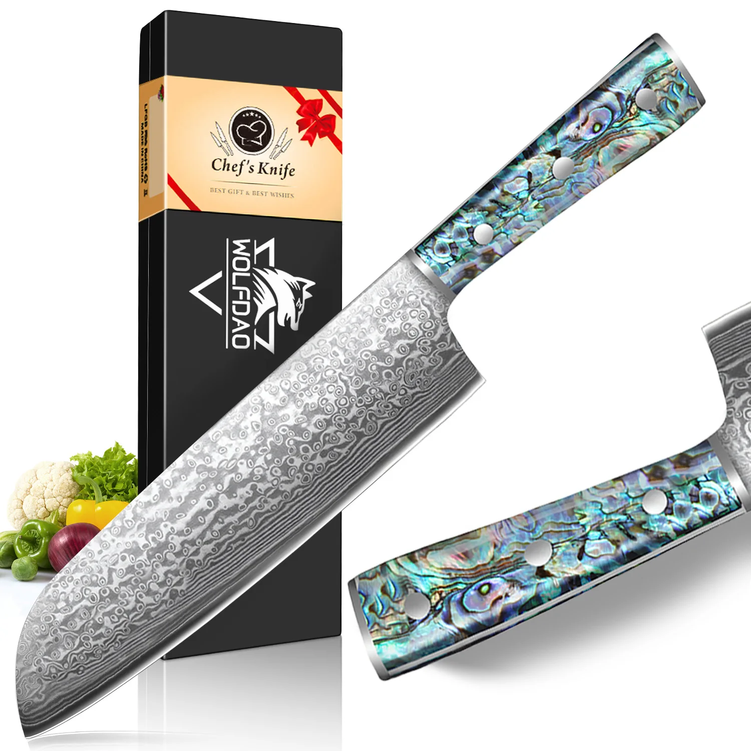 Coltello Santoku in acciaio Damasco SAEIV, coltello da cucina multiuso in stile giapponese per affettare, tritare verdure e carne