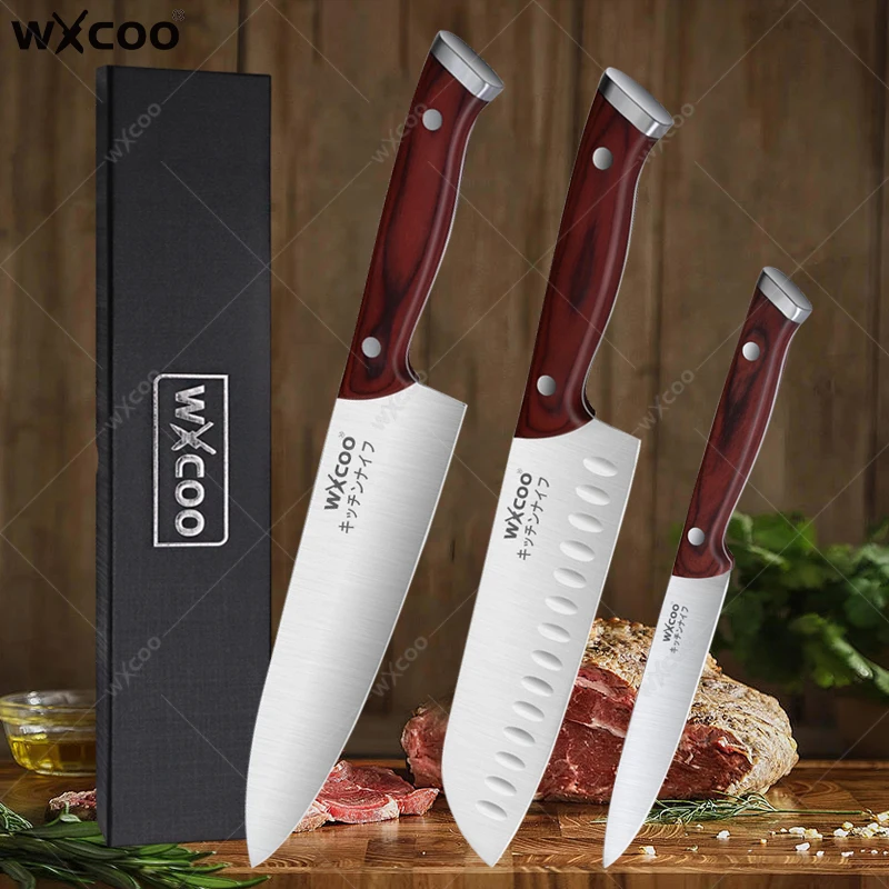 Set di coltelli da chef da cucina da 3 pezzi, multiuso professionale in acciaio inossidabile per tritatutto di verdure, disossamento, barbecue, pizza, formaggio