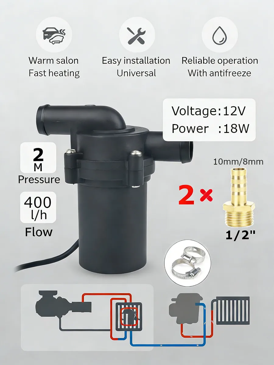 Pompa dell'acqua elettrica universale per riscaldamento auto 12V - Ripristina il riscaldamento della cabina, compatibile con la maggior parte dei veicoli