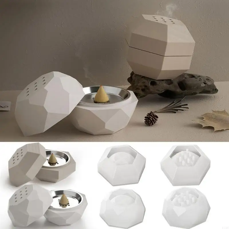 Stampo in silicone per calcestruzzo Incensi Bruciatori Scatola immagazzinaggio Fai da te Aromaterapia Gesso Candela Stampi in