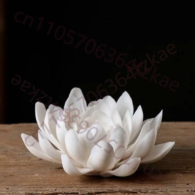 Squisito bruciatore di incenso con statua di fiore di loto in ceramica bianca cinese 11*5,5 cm