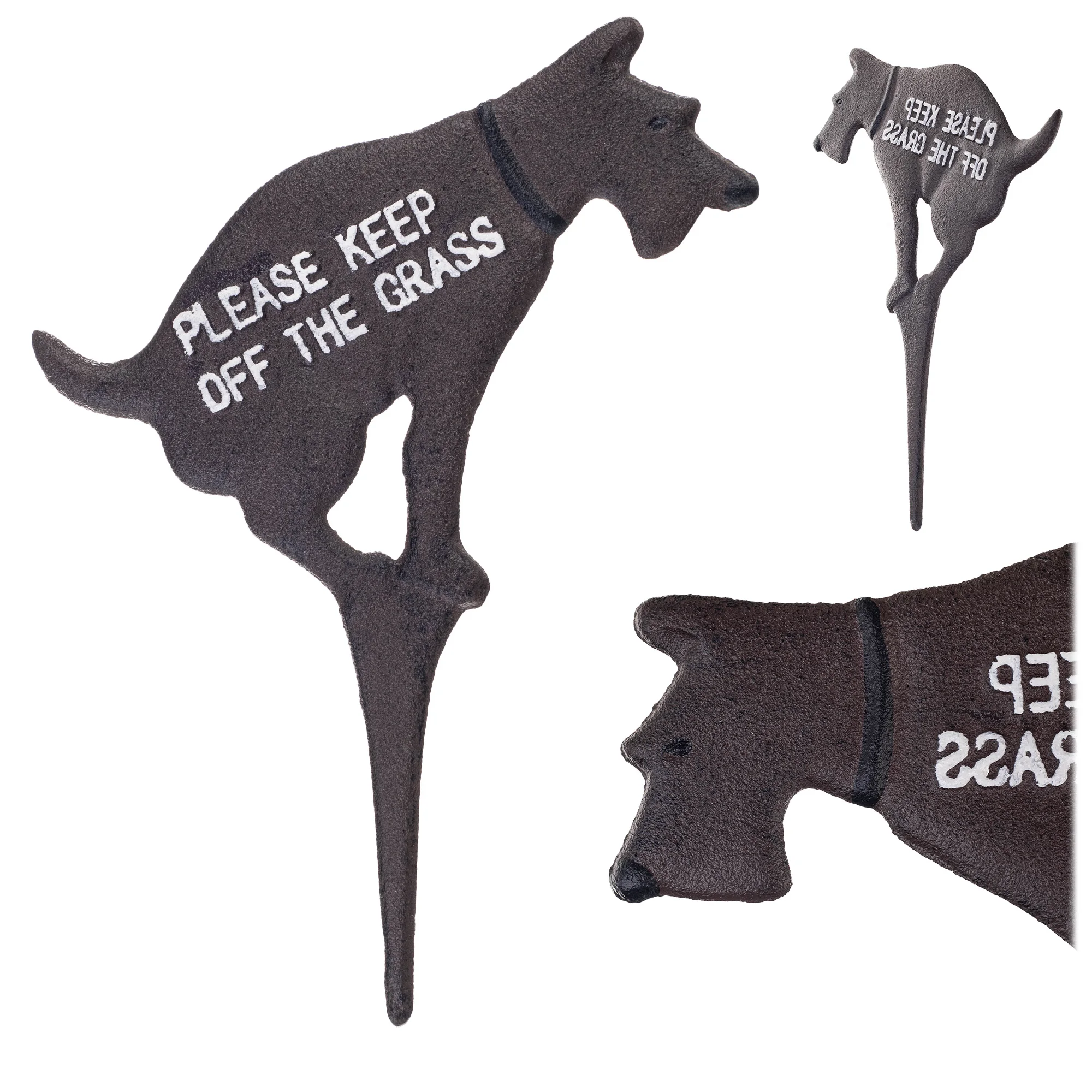 Insegna decorativa da giardino a forma di cucciolo in ghisa nera per cortile d'erba, senza cartelli per cacca di cane, pennarello di utilità paesaggistico