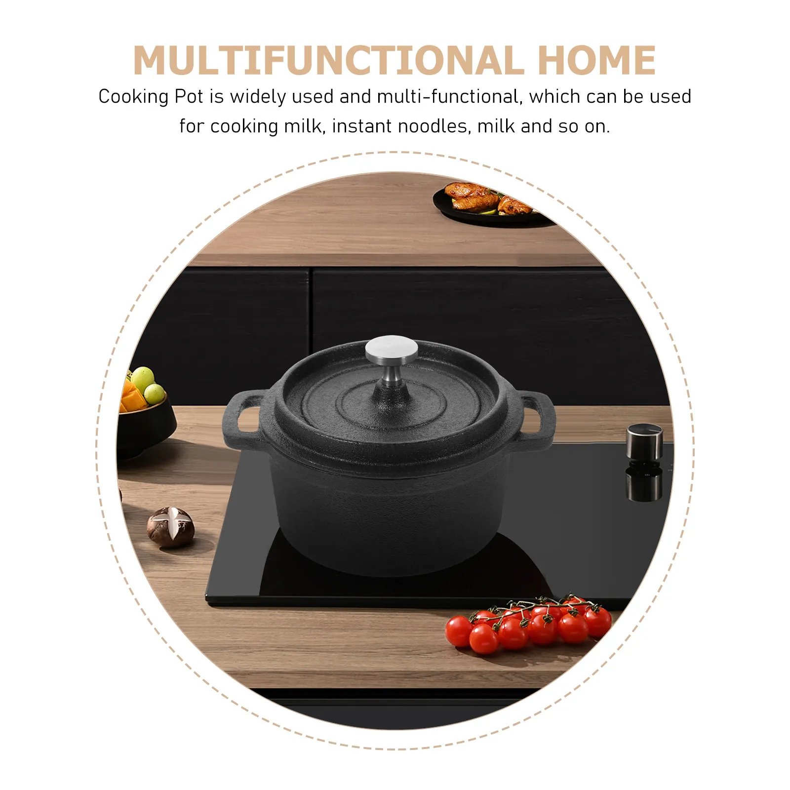 Pentola per Latte in Metallo con Doppio Manico, Piccola Pentola Domestica per Latte con Coperchio, Mini Pentola in Ghisa per Cottura a Vapore, Bollitura e Cucinare