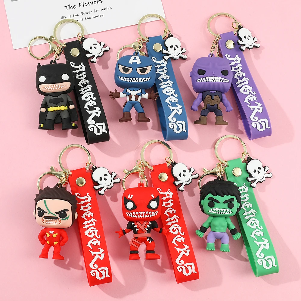 Marvel Iron Man Bat Hulk Thor Portachiavi Cartoon Anime Avengers Portachiavi Figura Chiave per auto in silicone Giocattoli regalo