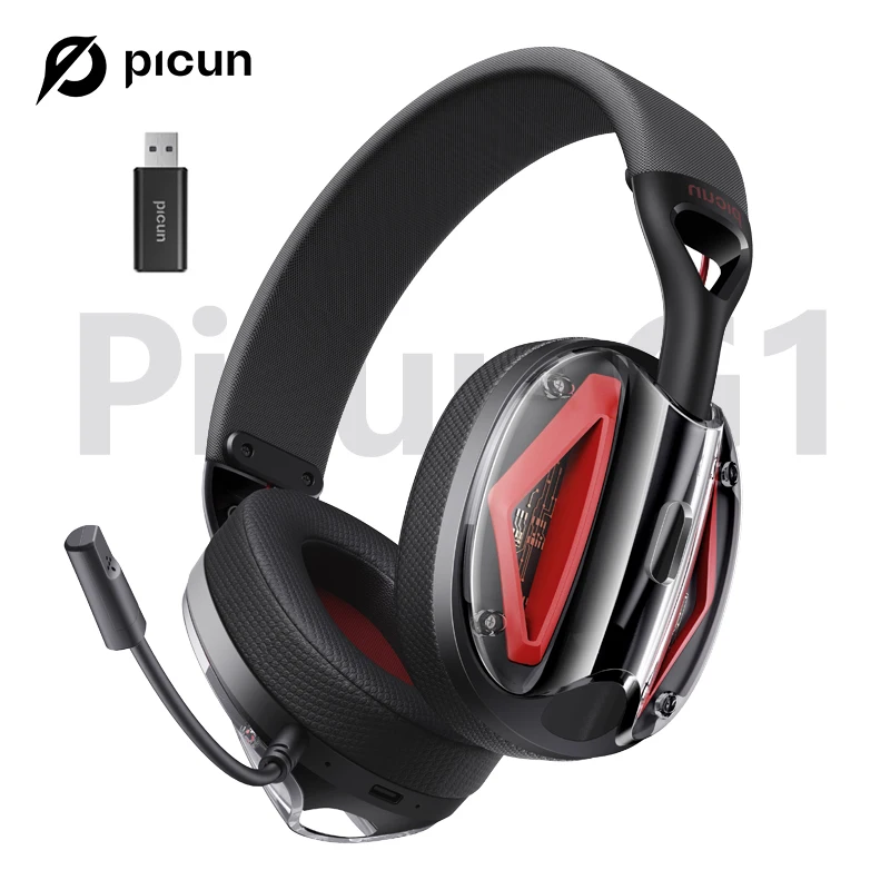 Picun G1 Cuffie wireless da gioco da 2,4 GHz Suono surround 3D Audio spaziale ENC Cuffie con microfono HD per giocatori Leggero PS5 PC Phone