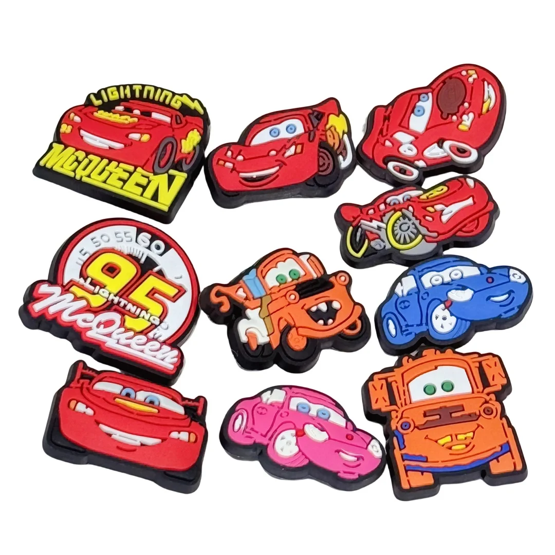 10-100 pezzi auto del fumetto fulmine McQueen PVC bambino scarpa fibbia charms zoccolo braccialetto fai da te sandali scarpe decorazione regalo del partito