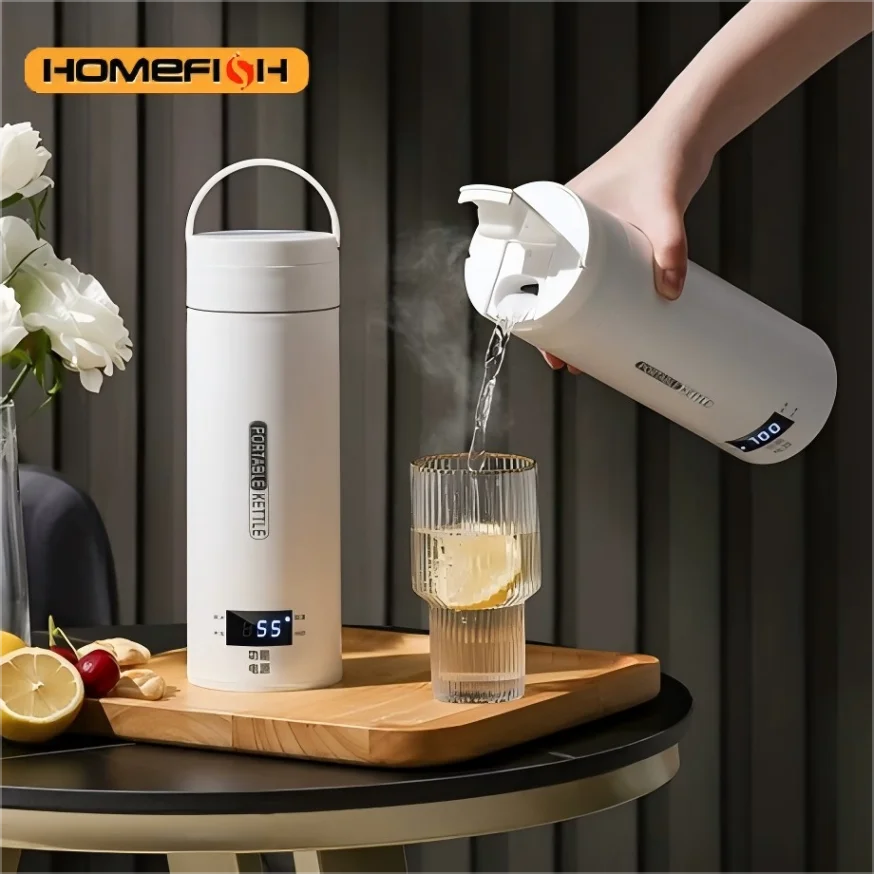 Bollitore Elettrico Portatile HOMEFISH 450ML per Tè e Caffè, Tazza Termica da Viaggio Antiustione con Menu in Inglese