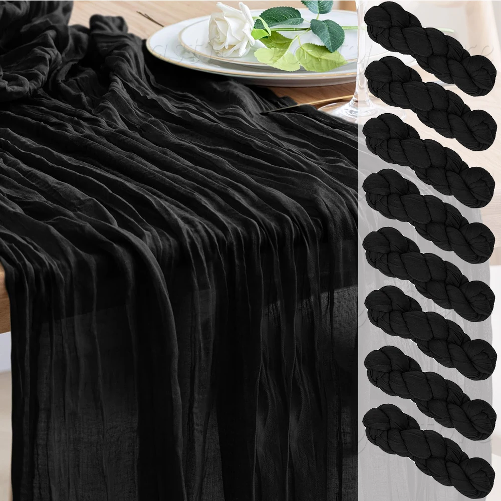 Runner da tavolo in tovaglia nera Boho rustico garza di formaggio runner da tavolo matrimonio compleanno addio al nubilato decorazioni per la casa