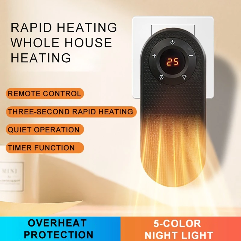 Riscaldatore da parete con luce notturna Piccolo scaldavivande rapido Protezione da surriscaldamento per scrivania, tavolo, camera da letto, uffici di studio