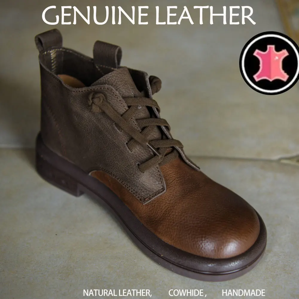 Stivali Classici Retrò in Vera Pelle di Vacchetta Multicolore con Suola Morbida per Donna, Nuova Tendenza 2025 in Pelle Genuina