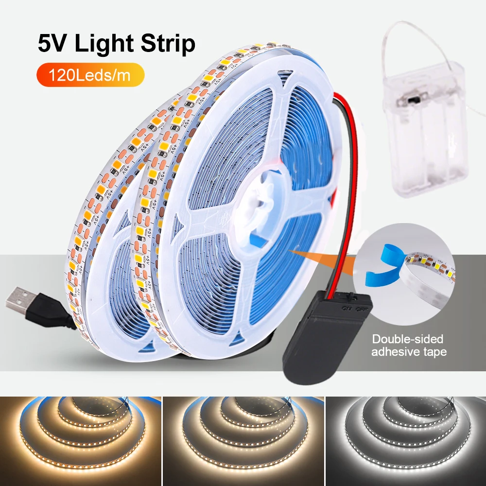3mm 5mm 8mm PCB LED Strip Light 5V USB Alimentato a batteria 2835 120LED 1 LED Taglio Nastro flessibile Nastro caldo bianco naturale Decorazioni per la casa