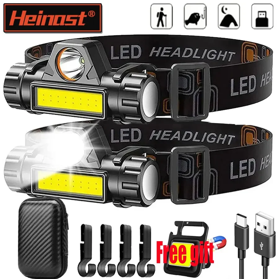 Mini ricaricabile potente sensore faro pesca campeggio USB testa torcia COB LED testa luce torcia fari lanterna anteriore