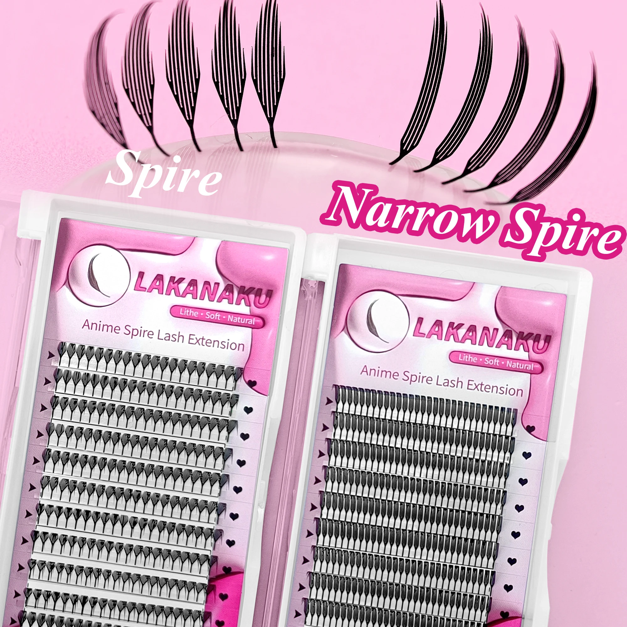 LAKANAKU Lasery troqueladas pestañas Ciglia a guglia strette Fibre tecnologiche Ciglia a punta anime