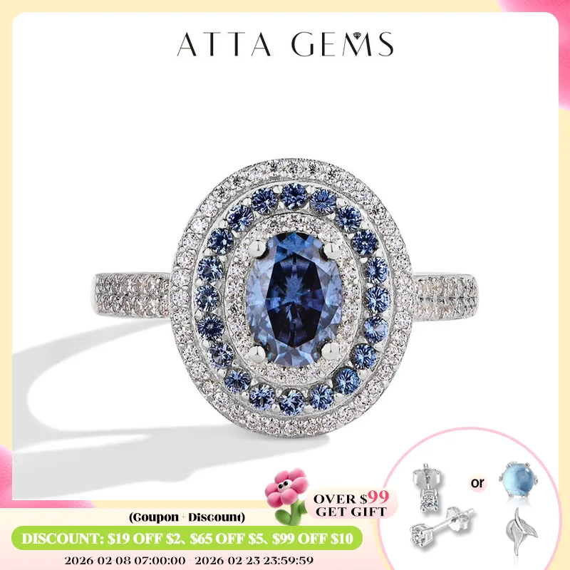 ATTAGEMS Moissanite blu Anelli da donna Taglio ovale 1.0CT Reale S925 Gioielli in argento sterling per anello di fidanzamento di nozze con certificato