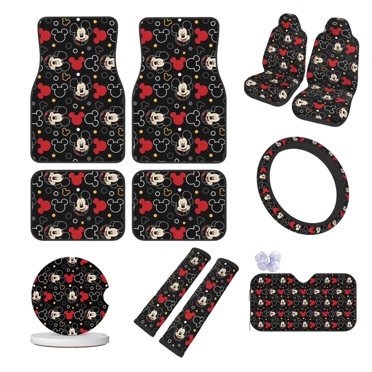 mickey mouse minnie Set di protezione interna per auto Coprisedili per auto Coprivolante Morbido cuscino per cintura di sicurezza Tende parasole