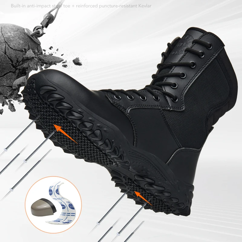 Stivali da lavoro e antinfortunistici da uomo Stivali da esterno Scarpe da lavoro antiforatura Stivali da combattimento anti-sfondamento nel deserto Scarpe protettive Stivali con punta in acciaio