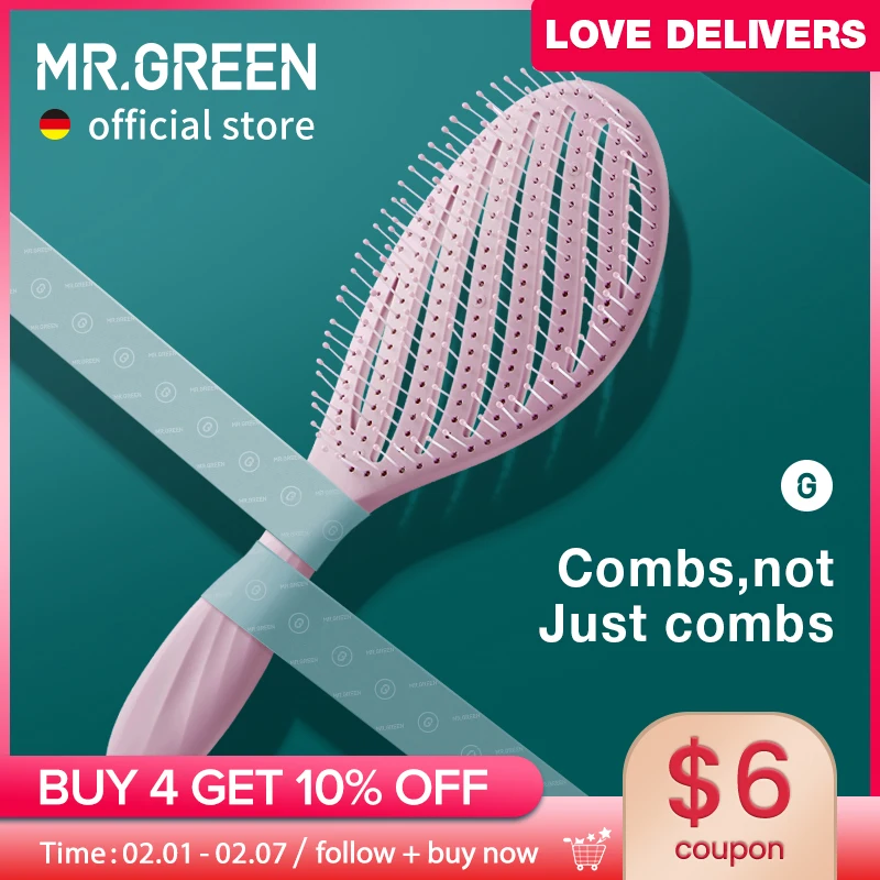 MR.GREEN Spazzola per capelli scavata Massaggio del cuoio capelluto Pettini Styling dei capelli Districante Asciugatura rapida Strumento districante Capelli ricci asciutti e bagnati