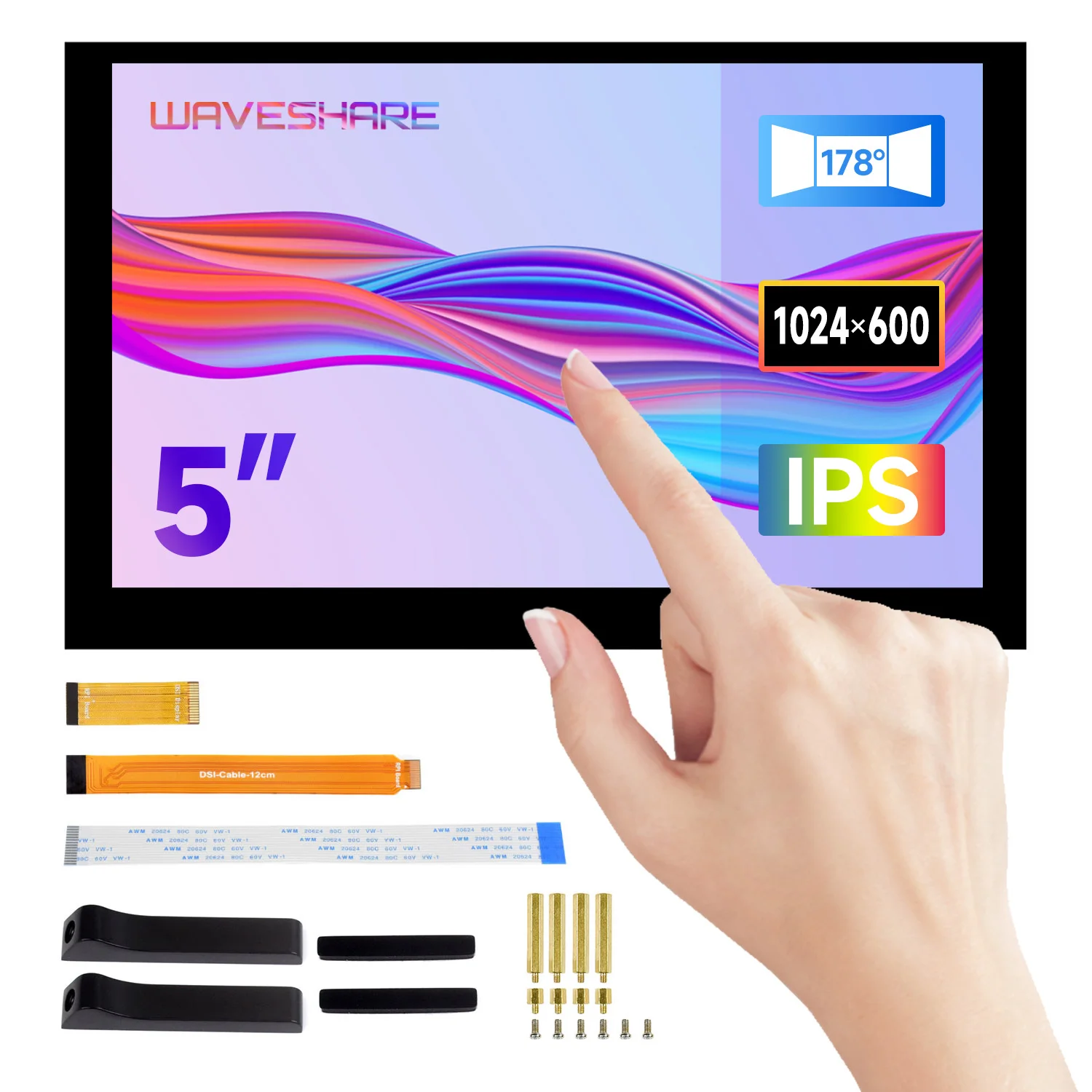 Waveshare Display touch capacitivo da 5 pollici per Raspberry Pi, DSI, pannello IPS, display 1024x600 per Raspberry Pi 5/4B/3B+/3A+