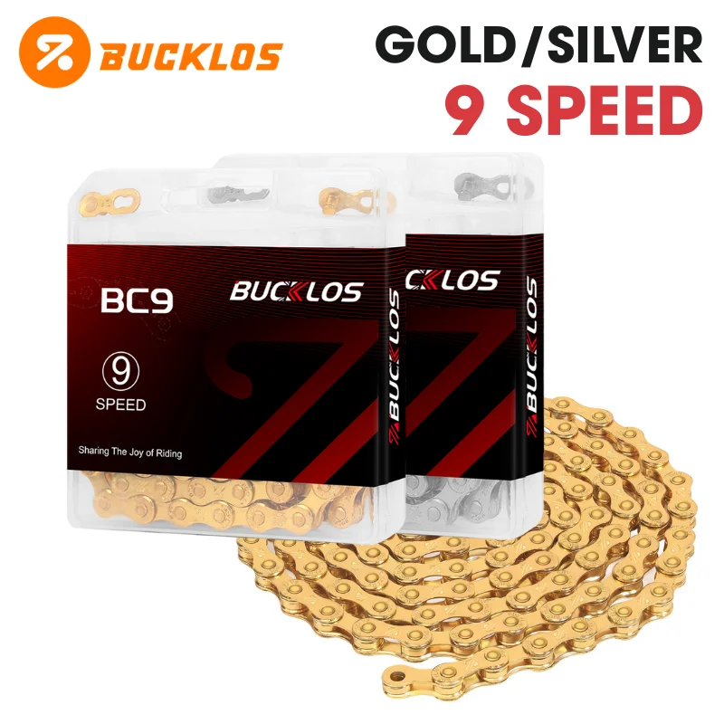 Catena per Bicicletta BUCKLOS a 9 Velocità, Ultraleggera, 116 Maglie, in Acciaio Inox, Universale per Bici da Strada e Mountain Bike, Parti Durevoli per Biciclette