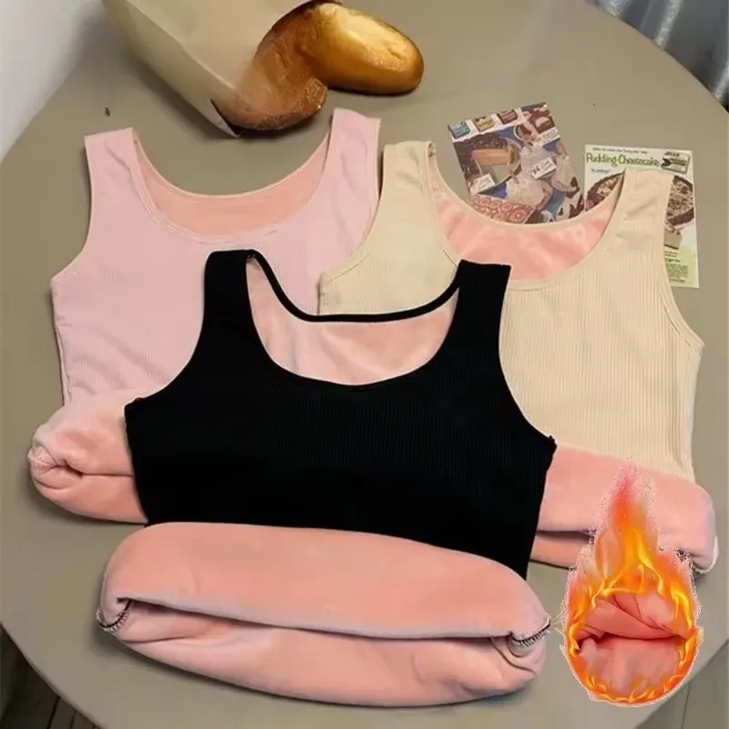 Intimo termico invernale da donna Top senza cuciture più camicia di velluto Gilet senza maniche Canottiera femminile calda Tinta unita Lingerie sexy
