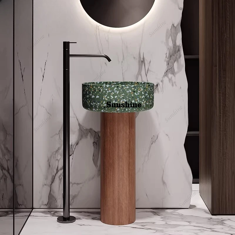 Lavabo verticale in terrazzo artistico personalizzato per hotel e alloggi, dal pavimento al soffitto