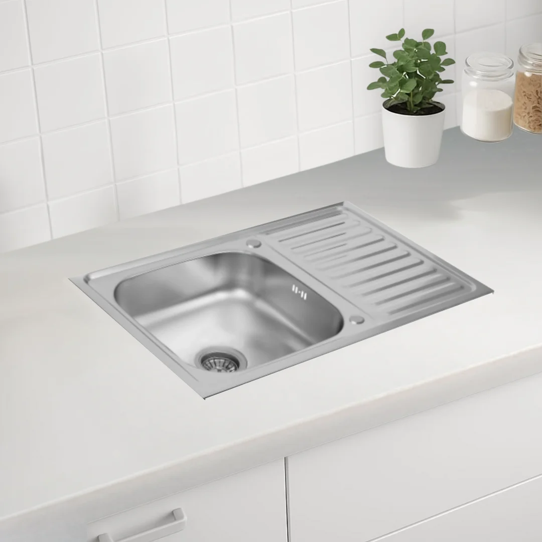 Lavello da cucina in acciaio inossidabile 80x50 cm Ciotola singola con foro per rubinetto e scolapiatti, argento, opzione sinistra/destra