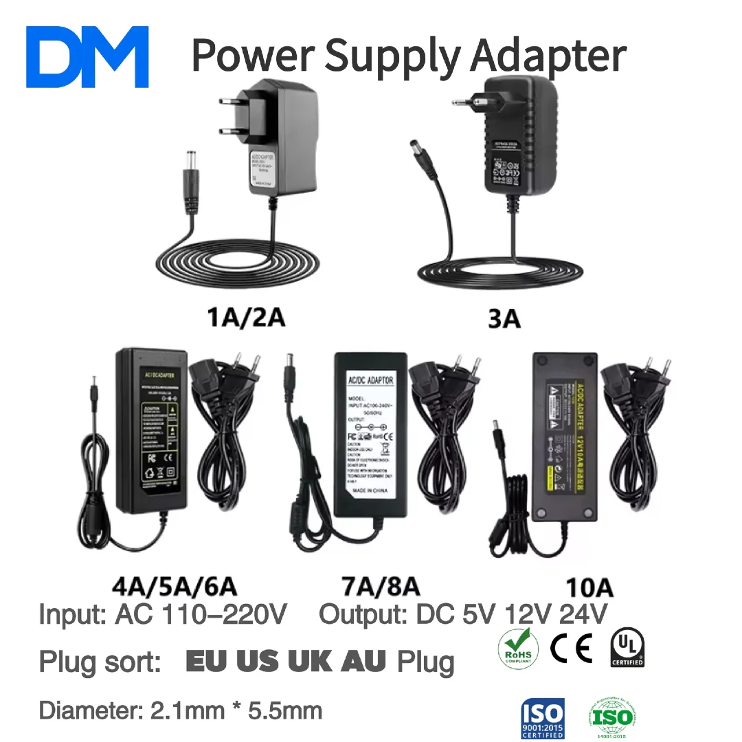 Adattatore AC DC 5V 9V 12V 15V 24V Alimentatore switching Varie tensioni 12V 1A 2A 3A Con DC Femmina 8PCS Jack DC Connettore EU US