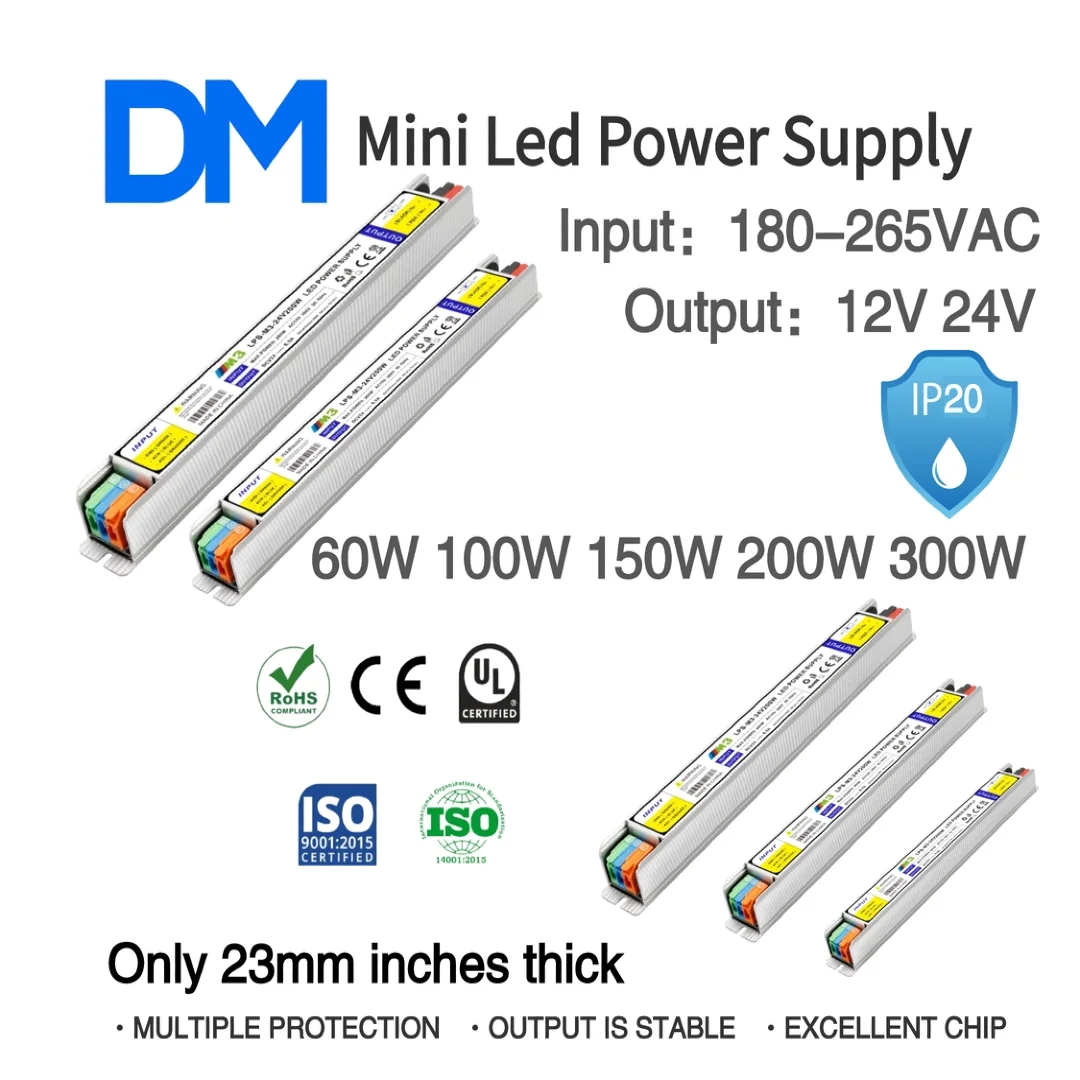 Alimentatore LED Mini AC 180-265V a DC 12V/24V 60W 100W 150W 200W 300W Alimentatore Switching Ultra Sottile per Illuminazione LED
